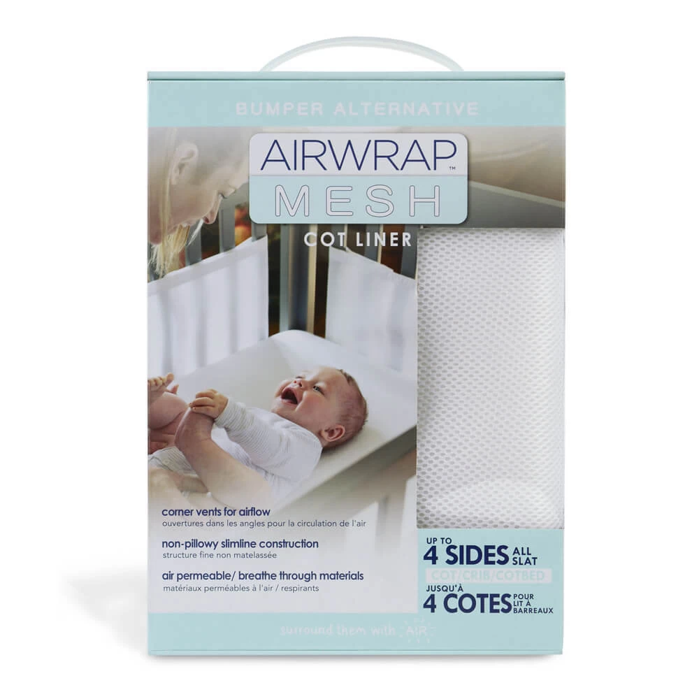 The AIRWRAP cot liner is an alternative to a cot bumper and is one of Australia’s most trusted and popular nursery bedding items since 2006. Moderately padded to help parents protect their baby from knocks and from tangling in the cot framework. Air-permeable with vented corners for air to move.