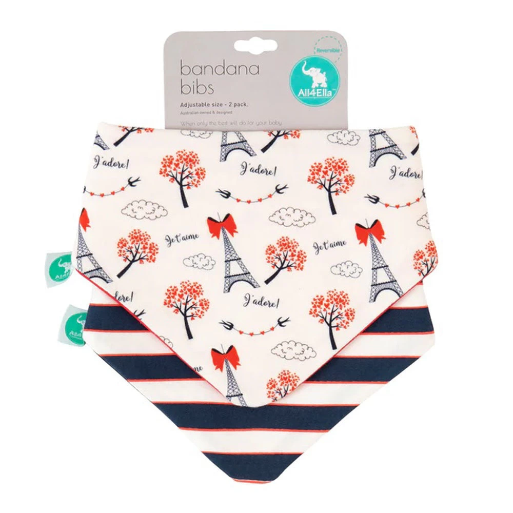 These gorgeous bibs are not only functional but fashionable. A 2 pack of adjustable Bandana Bibs are also reversible, giving you 4 options to choose from!
