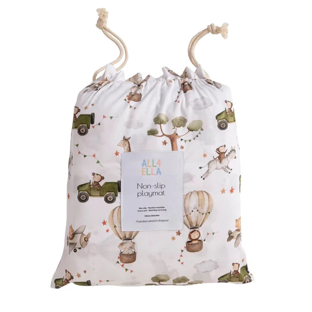 The play mat comes in a gorgeous draw string bag which is great for taking it on the go and for storage.