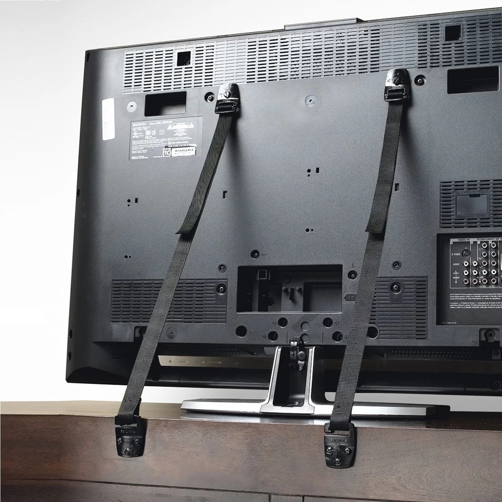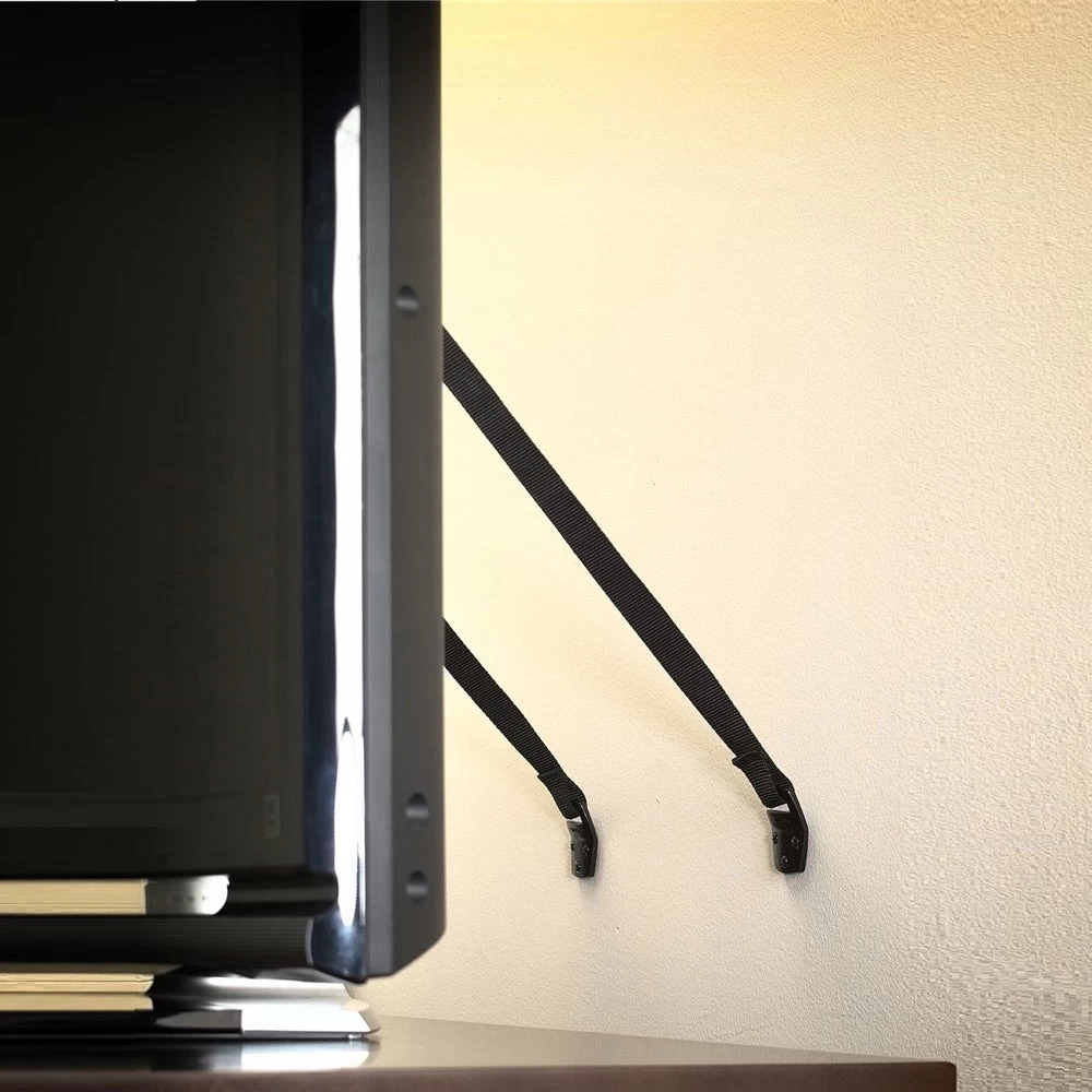 With the TV Safety Strap you can ensure that your TV does not tip over, while your child is playing in the living room. The straps are attached to the TV and furniture or wall with screws.