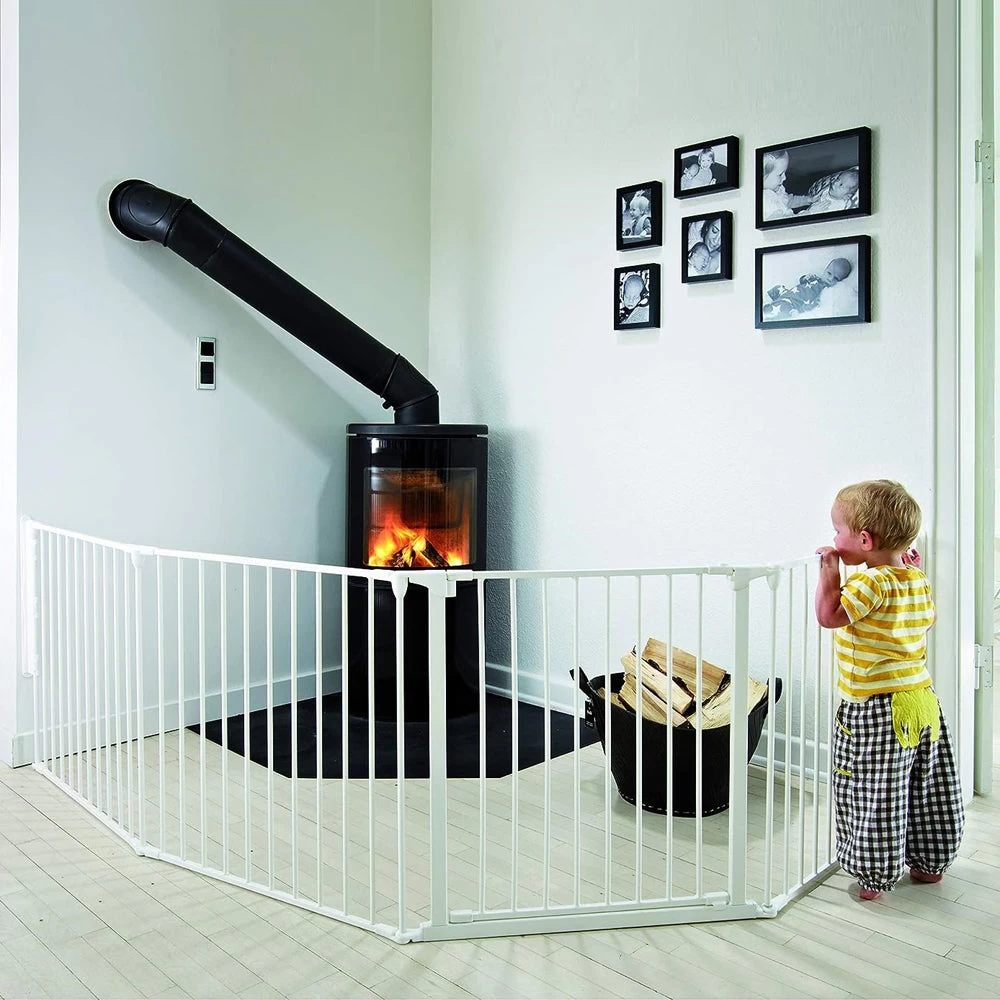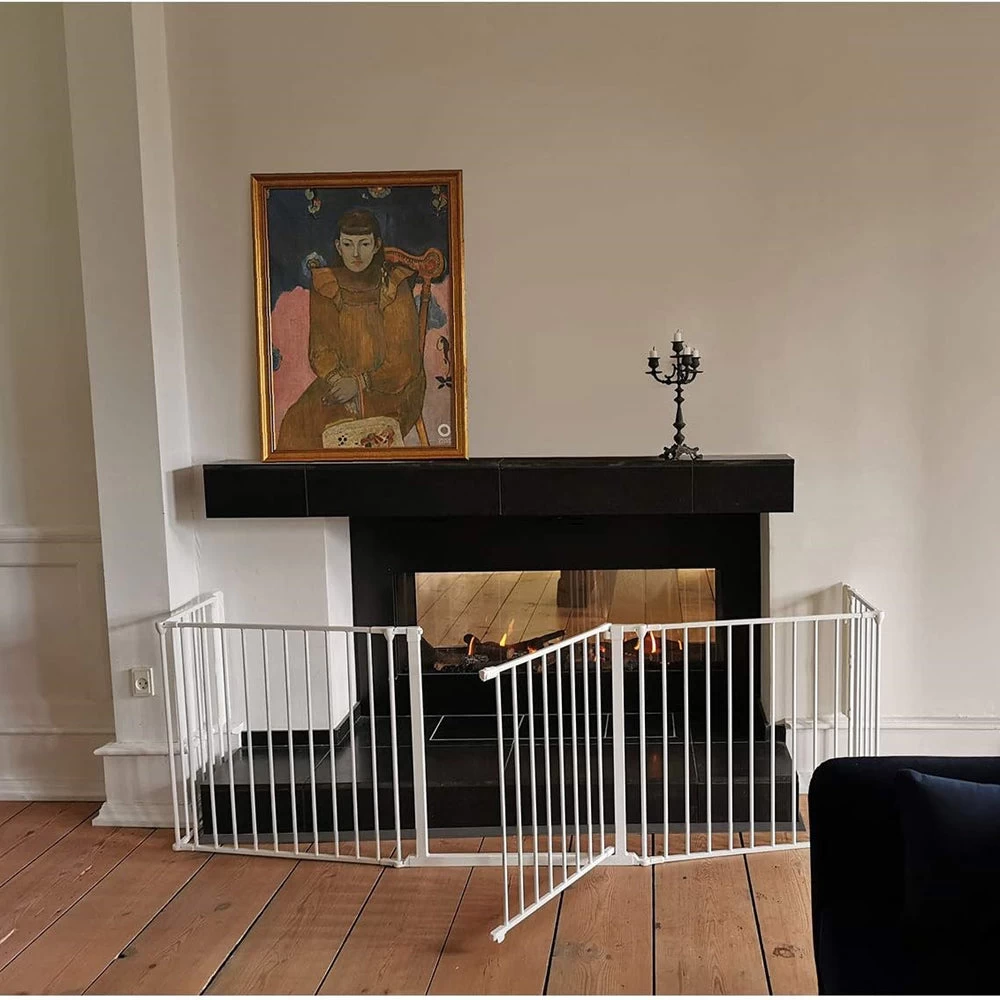 CAUTION: When used as a fire surround, always place the gate minimum 75cm away from the source of heat/fire and minimum 90cm from open fire. Since every fireplace/wood burning stove reaches different temperatures, the placing is only intended asa guide line. Test your own unit at maximum heat output before placing the gate. If the gate is hot to touch, move gate further from heat source than the recommended minimum distance.