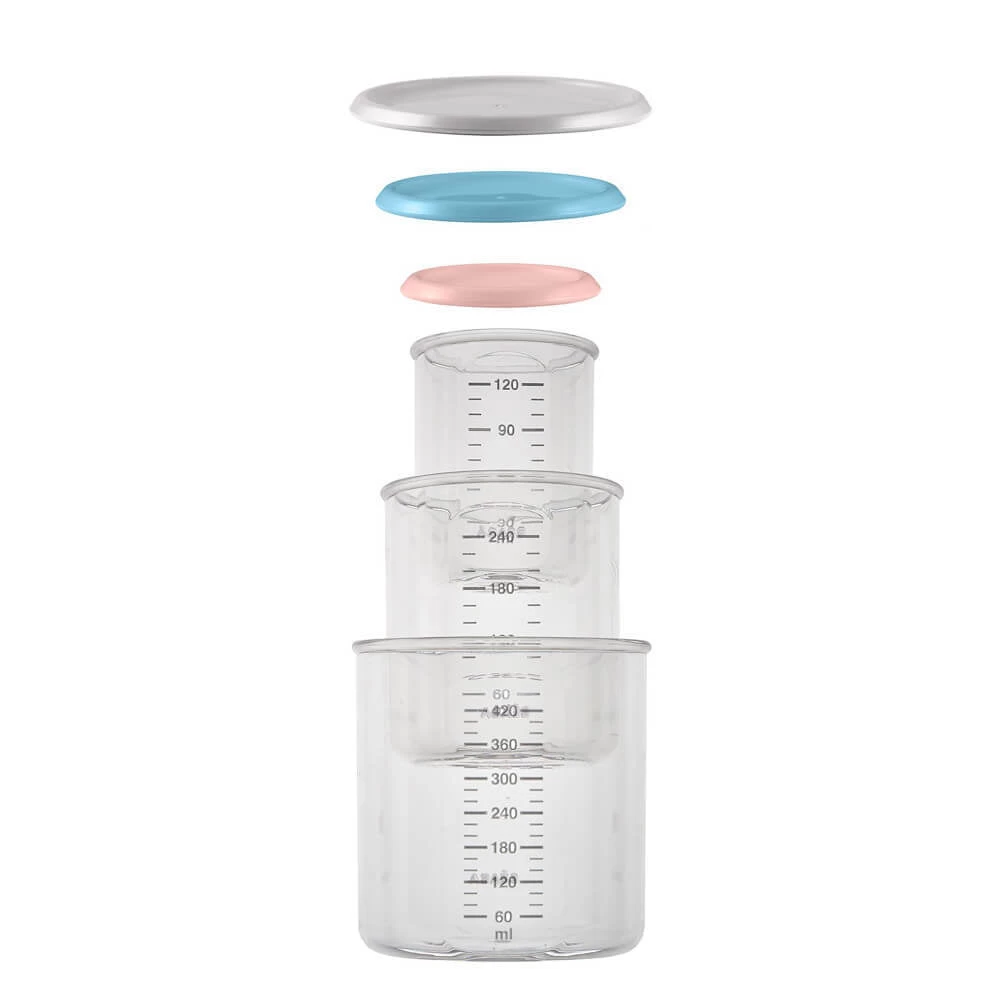 Premium storage containers. Air-tight jars for little and big eaters. Practical for freezing, stackable and easy to store. Microwave and dishwasher safe. Use in Babycook basket for reheating and defrosting. Transparent and easy reading graduation.