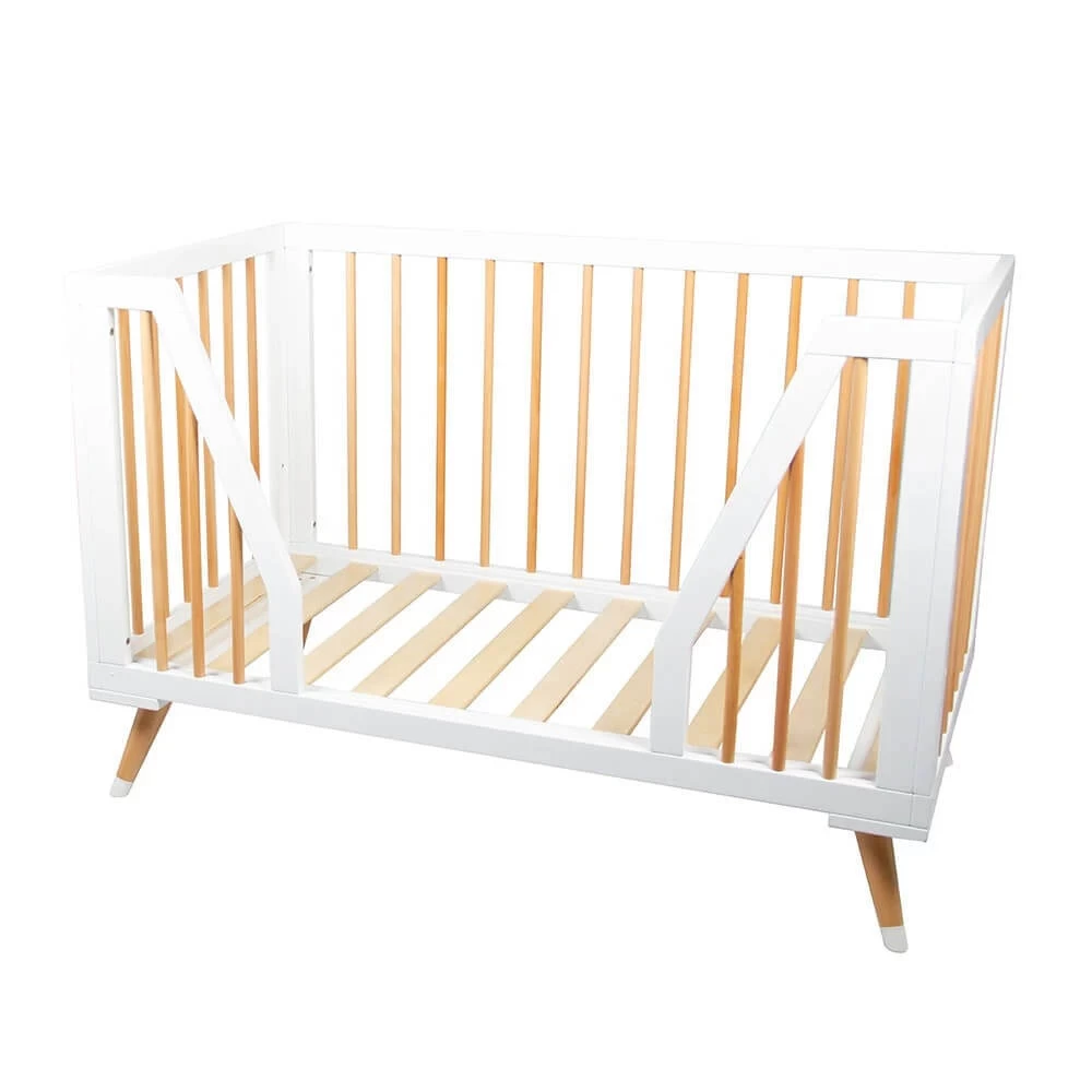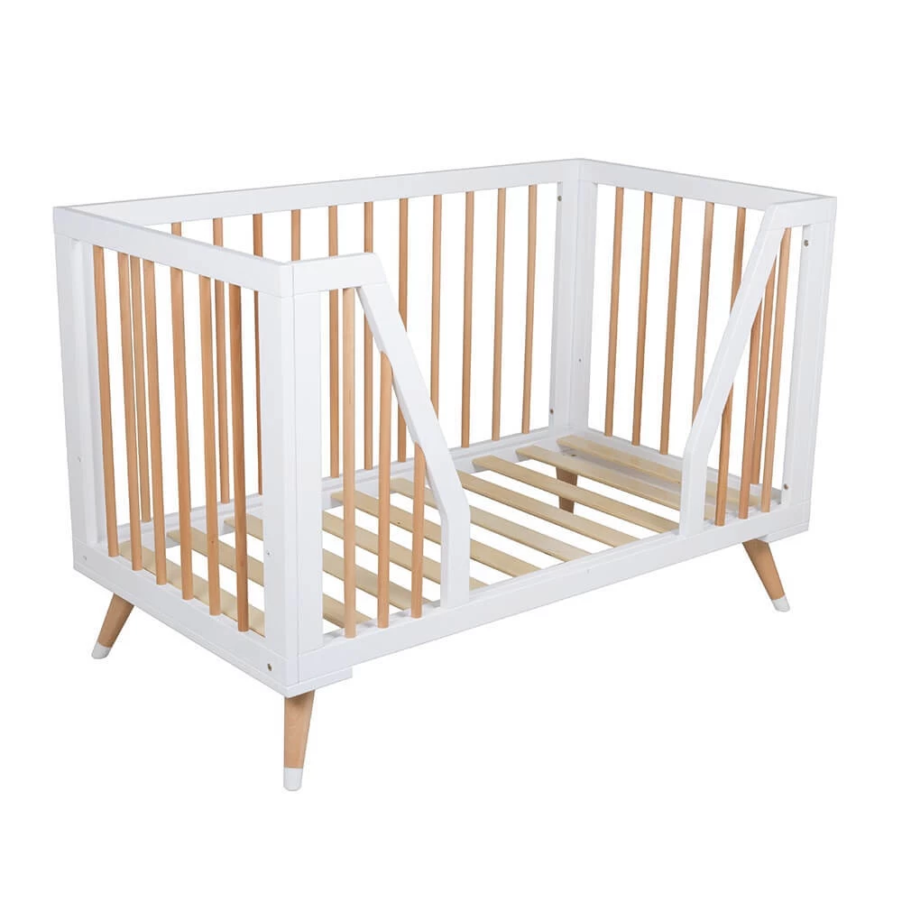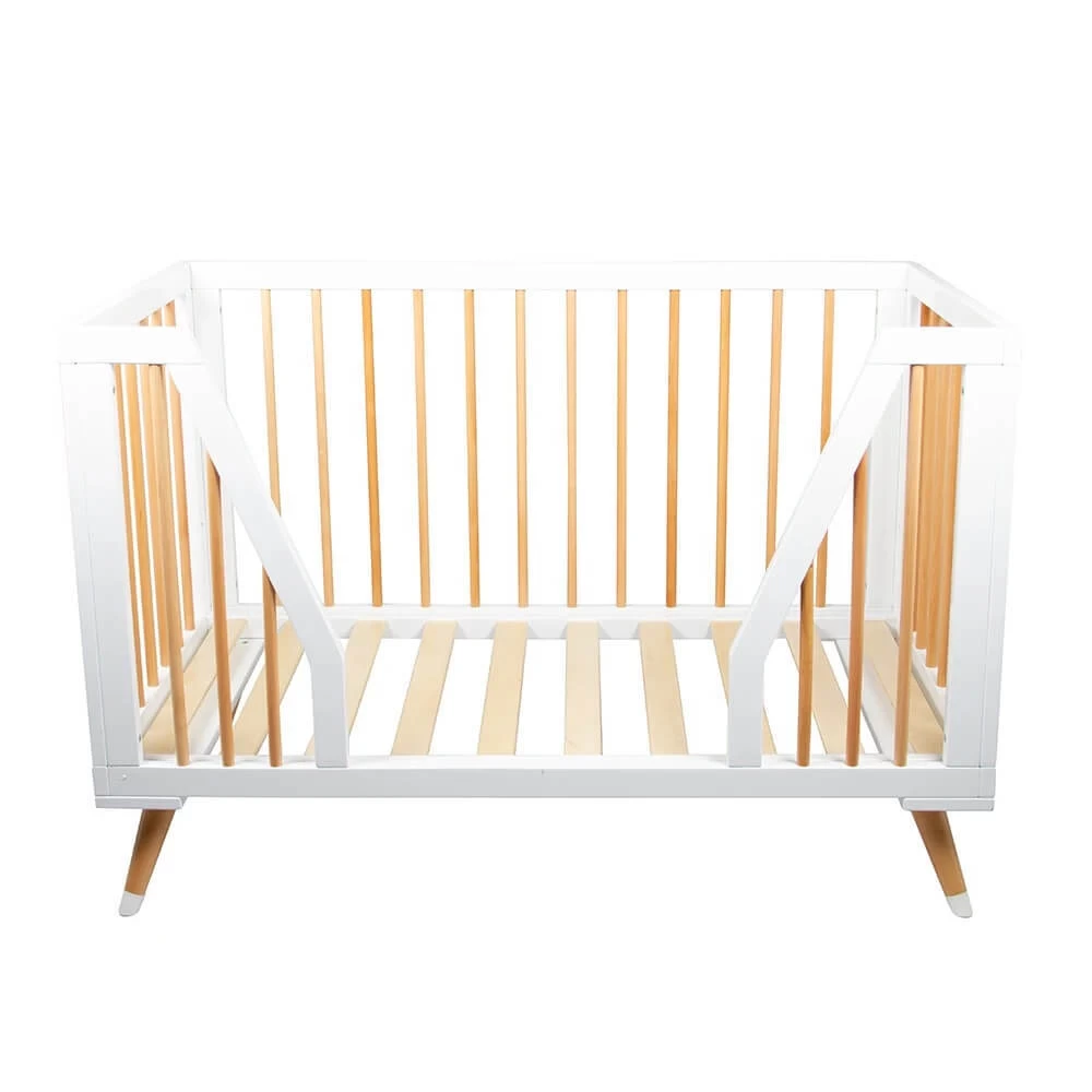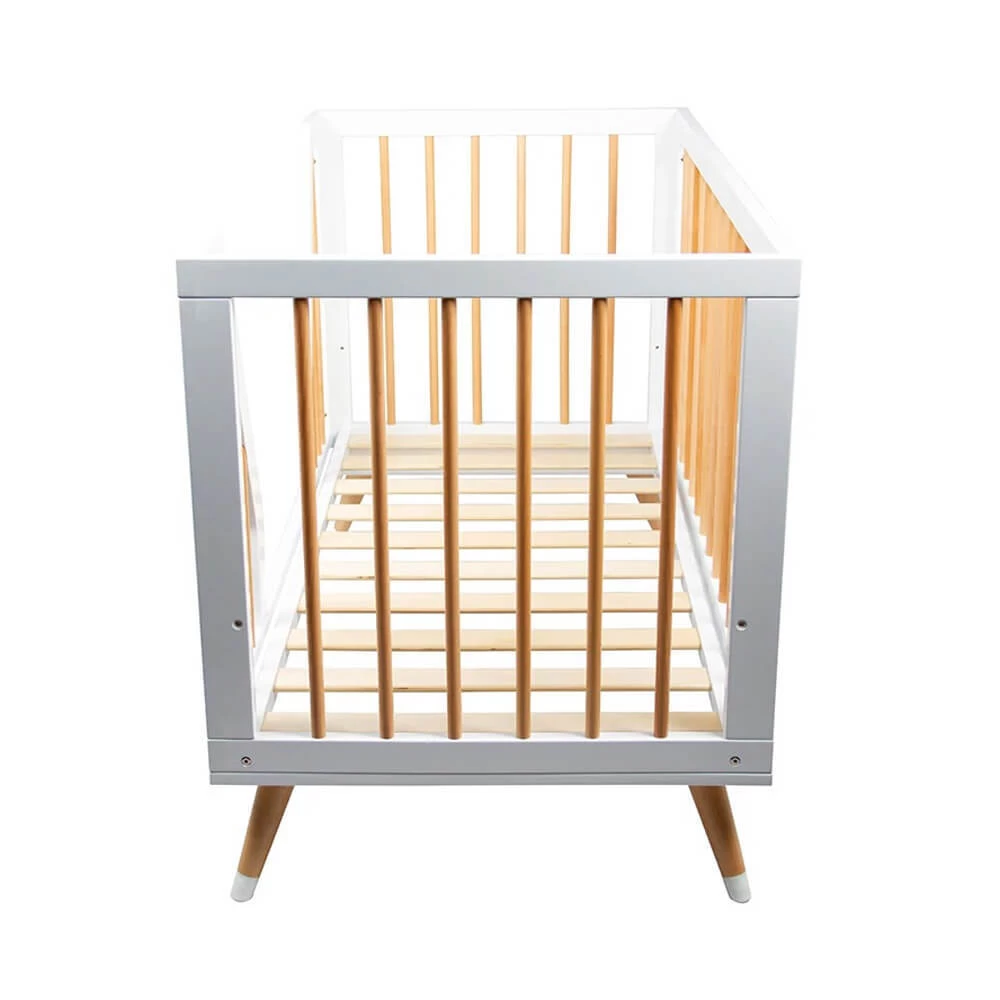 - Solid timber cot with fixed slat sides
