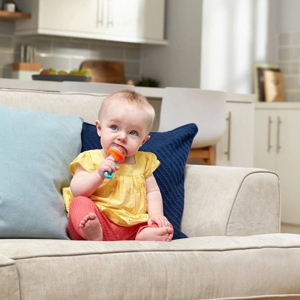- PULP – a silicone teething feeder, allows for easy feeding with its interior firm stem that forces food out where babies can get to it.