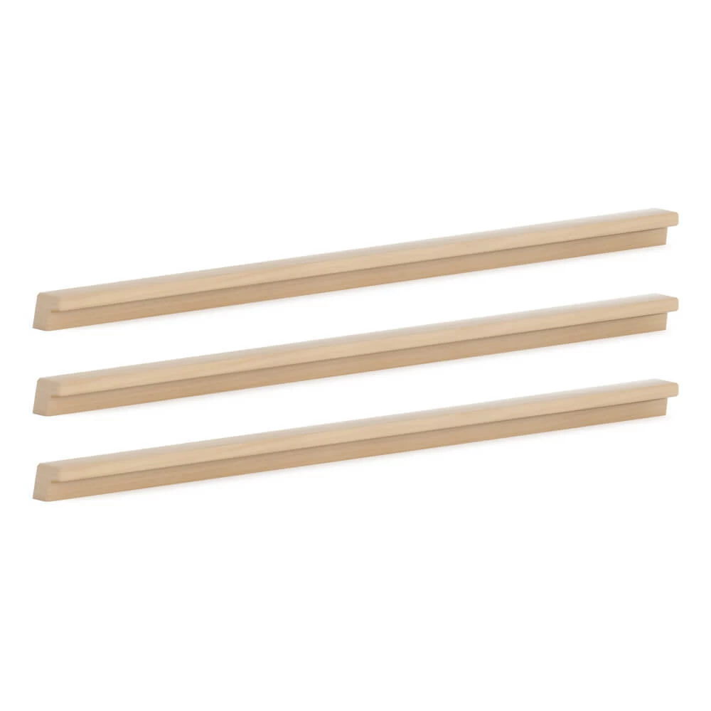 This set includes long wooden handles in an Almond finish that are compatible with both the Boori Neat 3 Drawer Chest and Neat 2 Door Wardrobe.