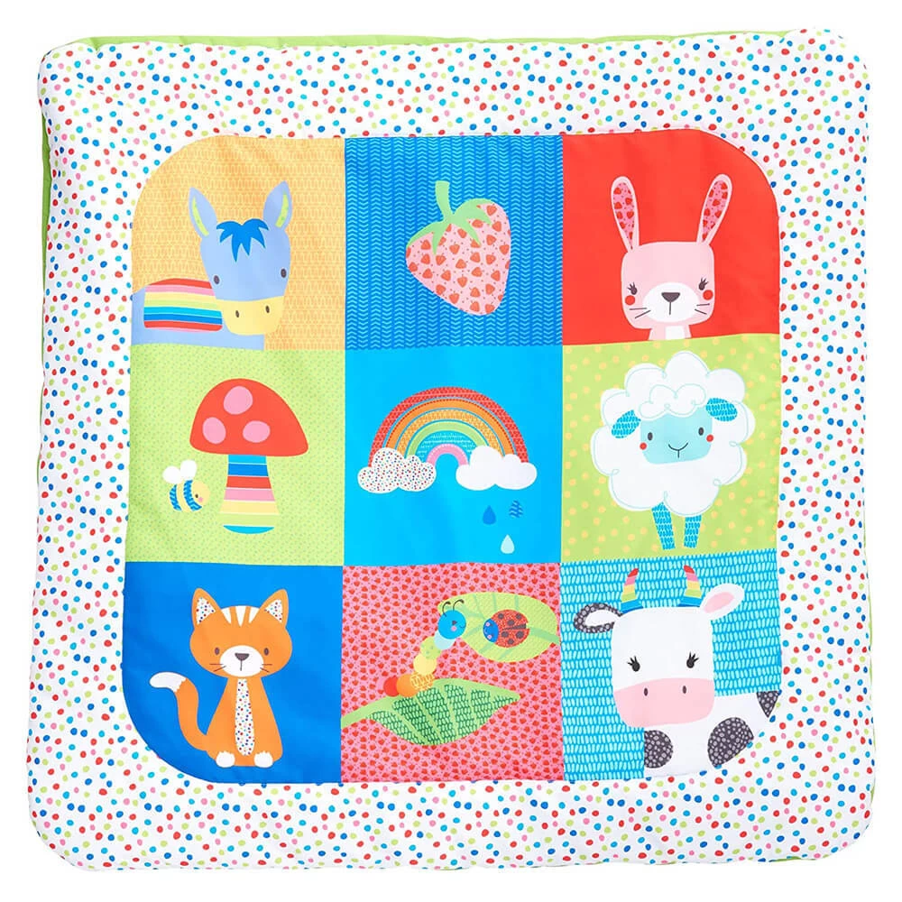 - Set contains: 1x padded playmat, 2x arches, 1x apple mirror, 1x crinkly Tweet Chick, 1x sensory rattle, 1x squeaky Martha Moo