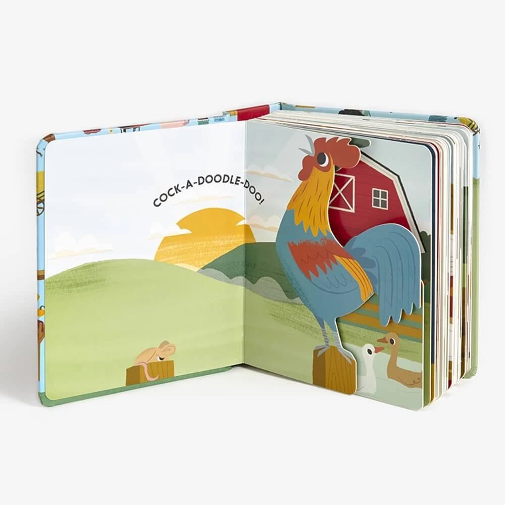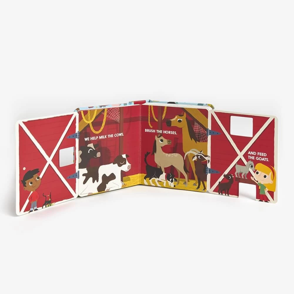 In keeping with the rest of the series, Farmblock features die-cut pages, gatefolds, and the charming art of British design team Peskimo.