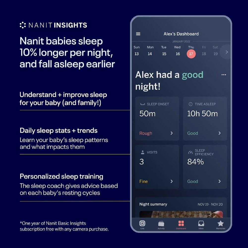 - One year of Insights Basic, the introductory subscription plan, which includes personalised tips to help you improve your baby’s sleep via the app