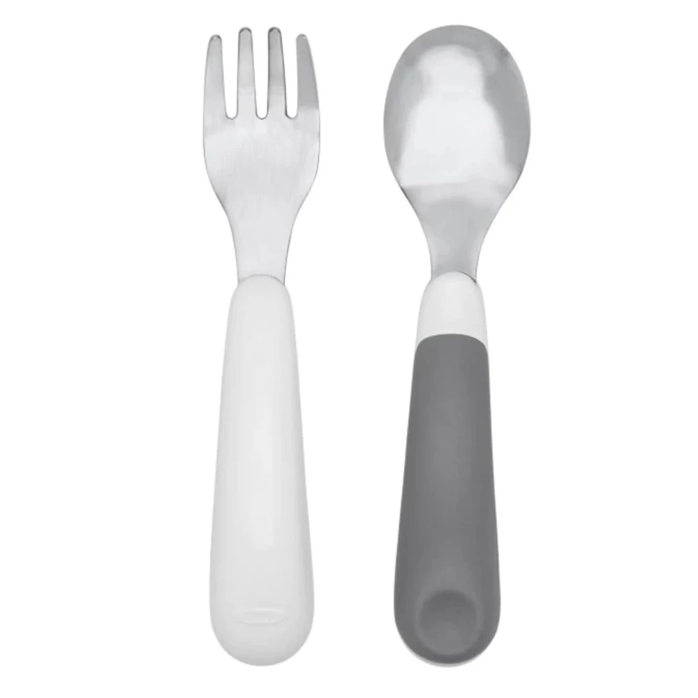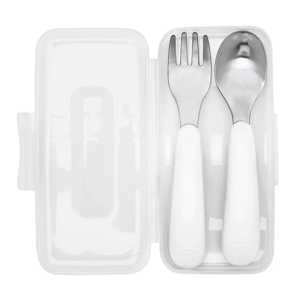 Whether taking your tot on a picnic or sending them off to school, the On-the-Go Fork & Spoon Set is designed to be easy for them to use.