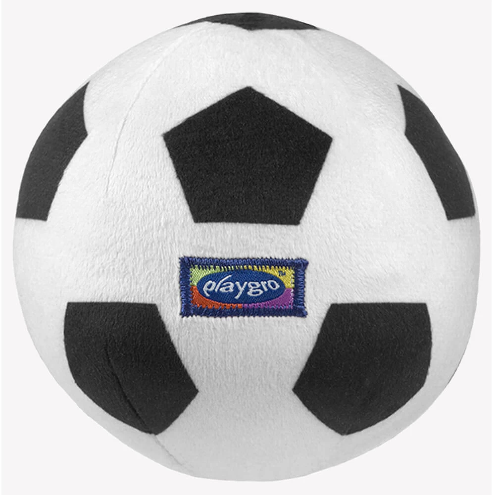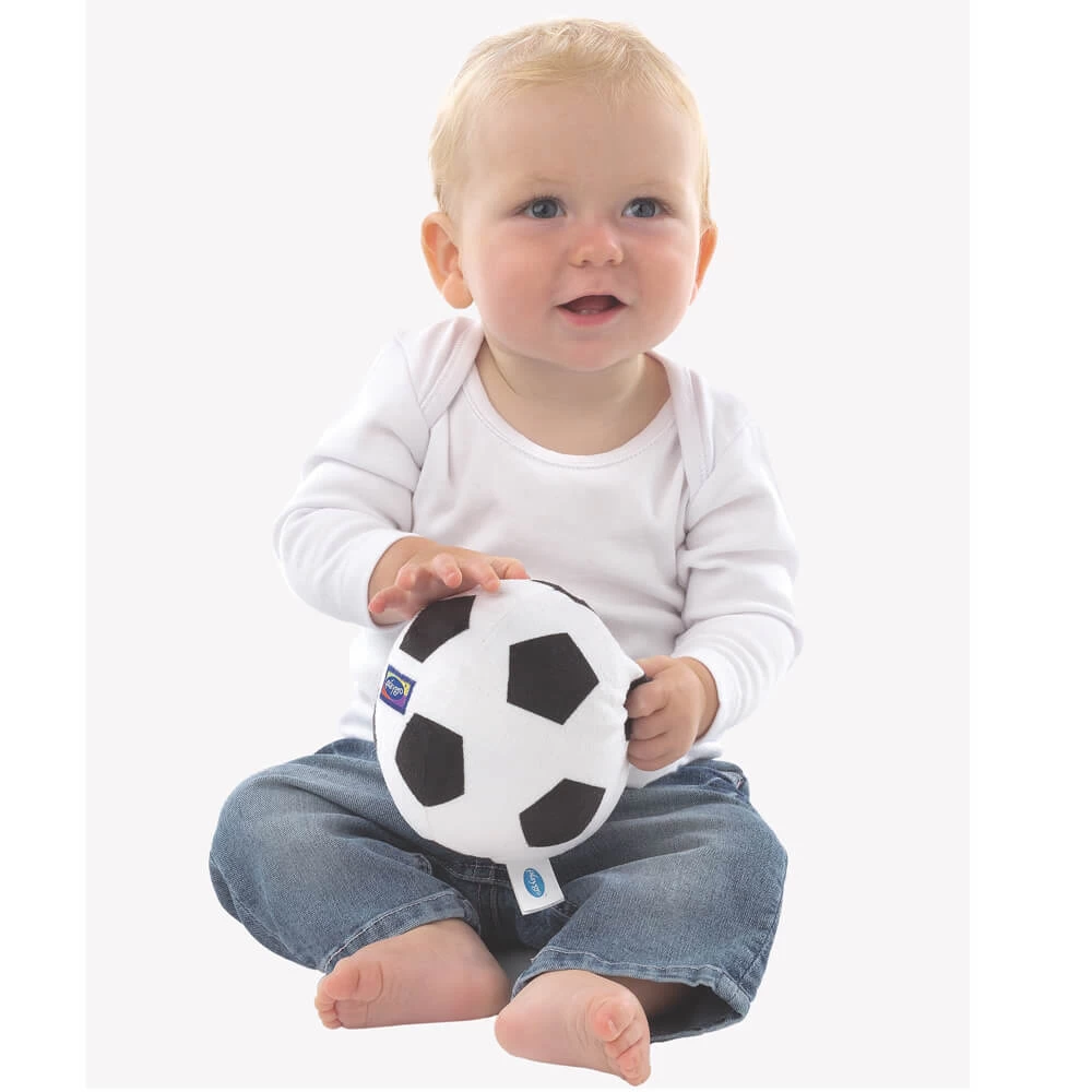 Perfect for every little soccer star! This black and white soccer ball will encourage baby to develop their first soccer skills! Featuring vibrant colours and various textures which assist visual perception and tactile development, this ball engages baby while assisting their development. The movement activated chime provides auditory stimulation and encourages baby’s motor skills.