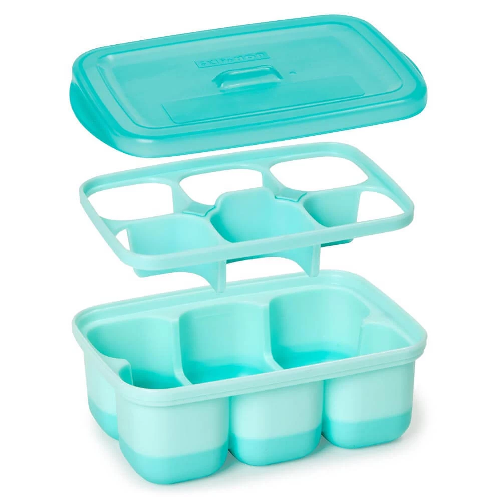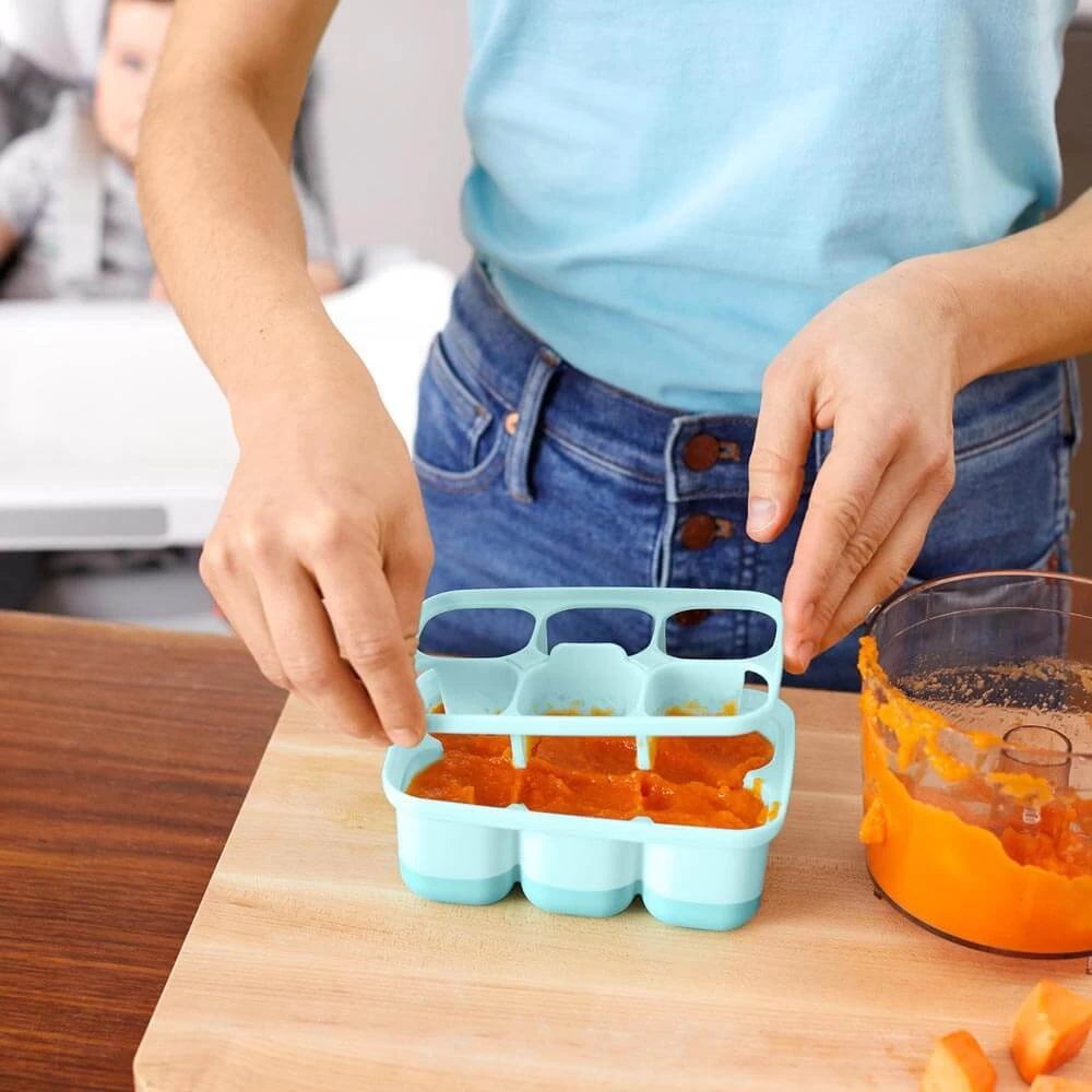 Simply fill the tray with your homemade purée, insert the divider and pop in the freezer. When you’re ready to serve, place bottom of tray under warm water to soften, and push to release individual cubes.