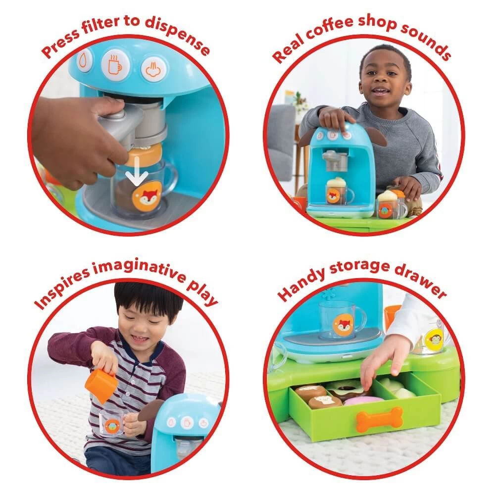 A fill & drop filter, real coffee shop sounds, plus all the extras make this 20-piece set a perfect pick for pretend play.
