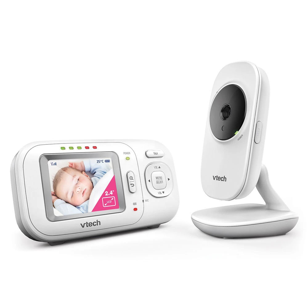 Keep an eye on your little ones even while you’re not at home with the Vtech BM2700 Safe & Sound Video and Audio Baby Monitor. It features a 2.4GHz FHSS technology, helping ensure a secure connection and crystal-clear audio without interference.